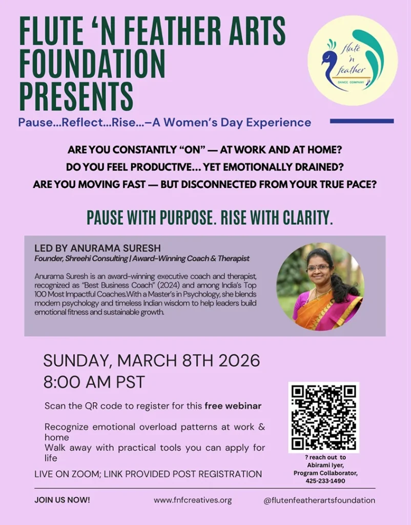 Flute ‘n Feather Arts Foundation is where culture, community, and compassion come together. We celebrate tradition through the Spirit of Margazhi Festival, inspire wellness with impact-driven charity walks/runs, and ignite minds with thought-provoking speaker events, wellness talks, and fireside chats. Every experience we create is rooted in purpose—with 100% of proceeds supporting humanitarian causes.
